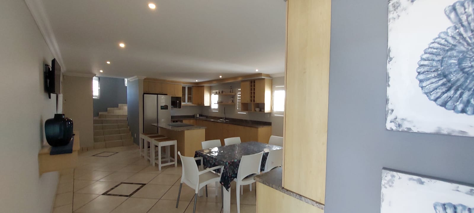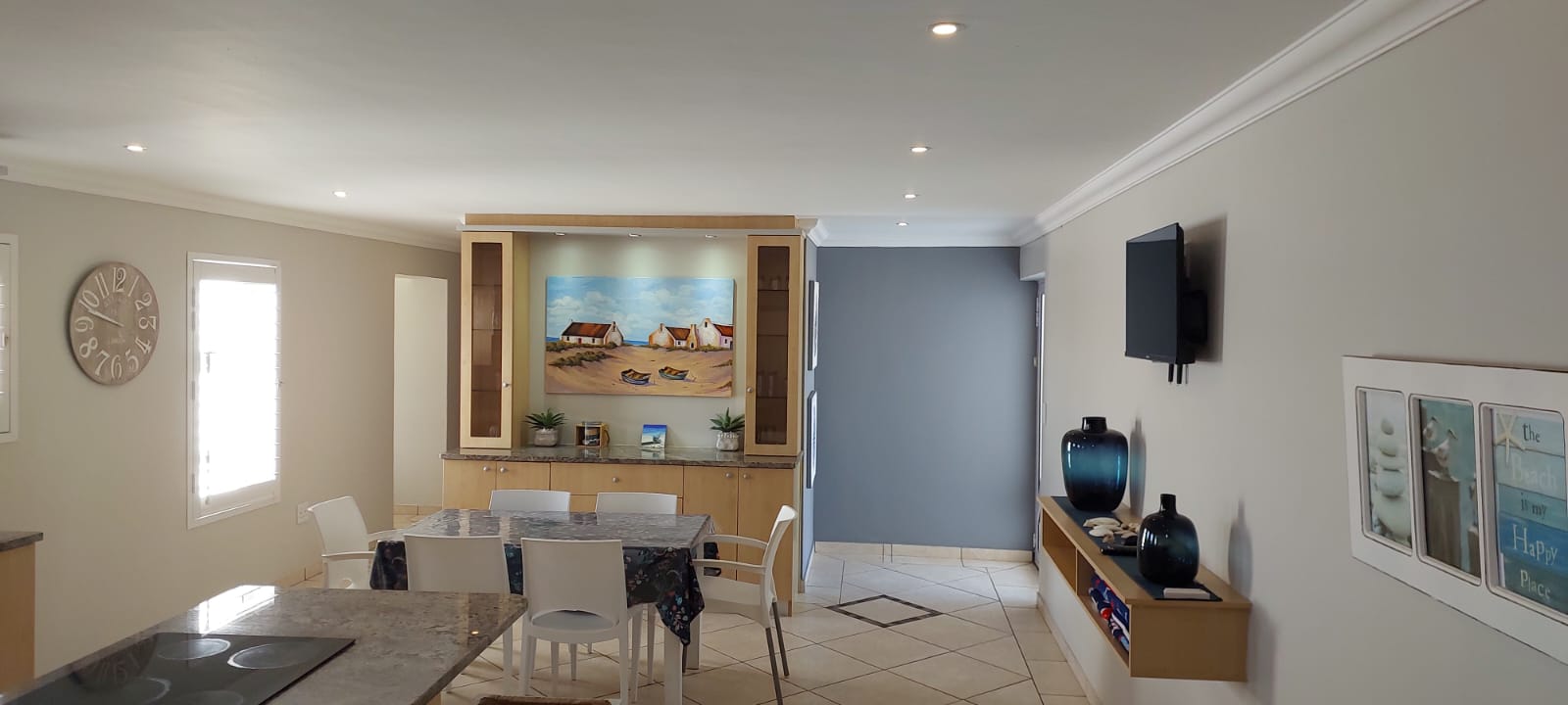 Situated in a semi-security village, almost “on Golden Mile” in Britannia Bay, this home is designed for effortless indoor-outdoor living. The standout feature is the indoor braai area that seamlessly flows through large sliding doors onto a spacious open balcony with lovely sea views — ideal for entertaining while enjoying the fresh ocean air. Lampies Bay is a PET FRIENDLY Estate while the Rates and Taxes are estimated.