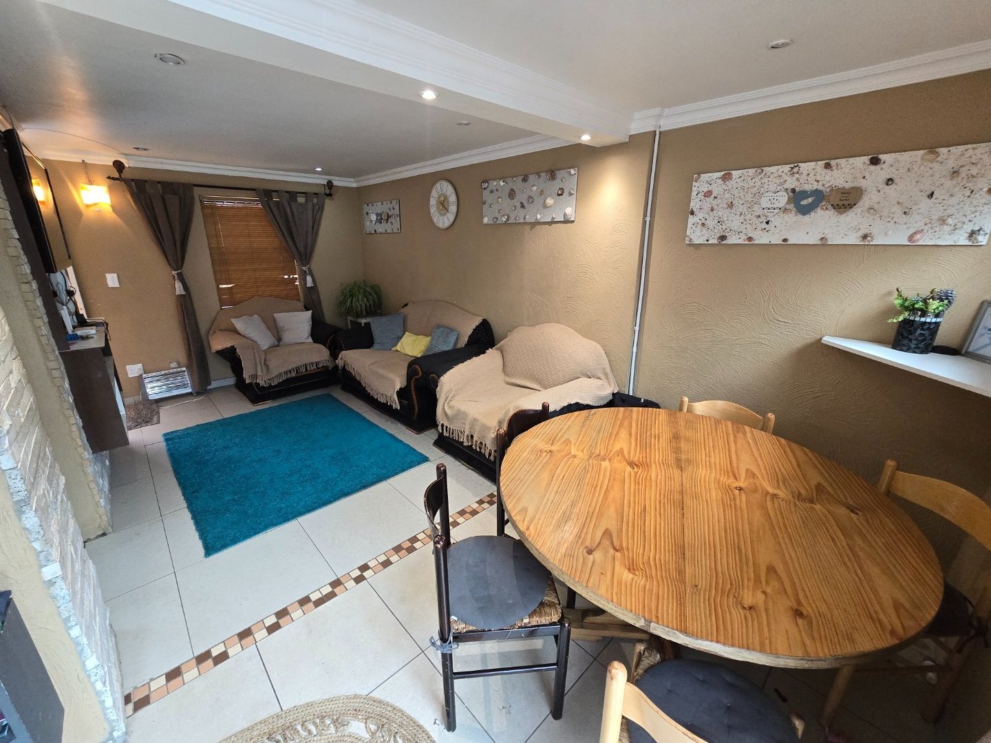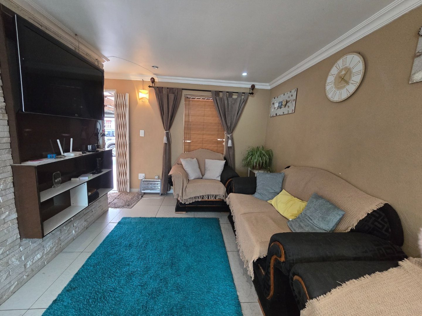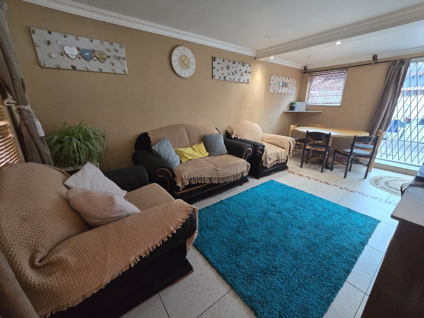 This secure 4-bedroom home is ideal for comfortable family living. All bedrooms are fitted with built-in cupboards, providing practical storage. The kitchen is neatly designed with built-in cupboards, a gas stove, and an electric oven, making it both functional and modern. The home offers two bathrooms — one with a bath and another with a shower — adding convenience for the whole family. A cozy lounge and open plan dining area creates a welcoming space to unwind, while the double garage ensures secure parking and additional storage as well as a built-in braai area perfectfor entertaining. With its secure setting and well-planned layout, this property is ready to move in and make your own.
